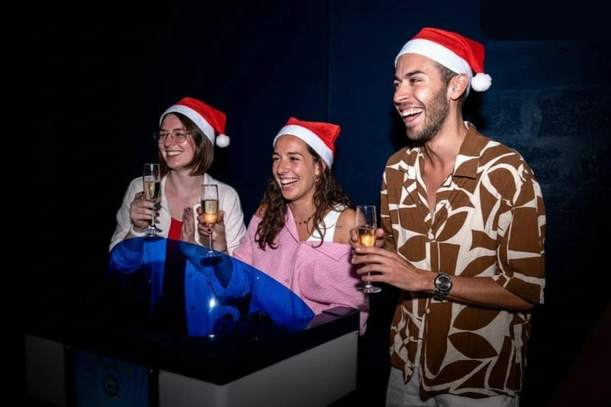 Wil je even weg van de drukte, maar toch volledig in de kerstsfeer blijven? Dan is Quizmas precies wat je zoekt. Bij Quiz Room Gent stap je binnen in een echte quizstudio: professionele lichtjes, buzzers die tintelen in je handen, microfoons, een host die alles in goede banen leidt… Alleen dit keer is het decor extra warm, gezellig en helemaal gedipt in kerstsfeer.