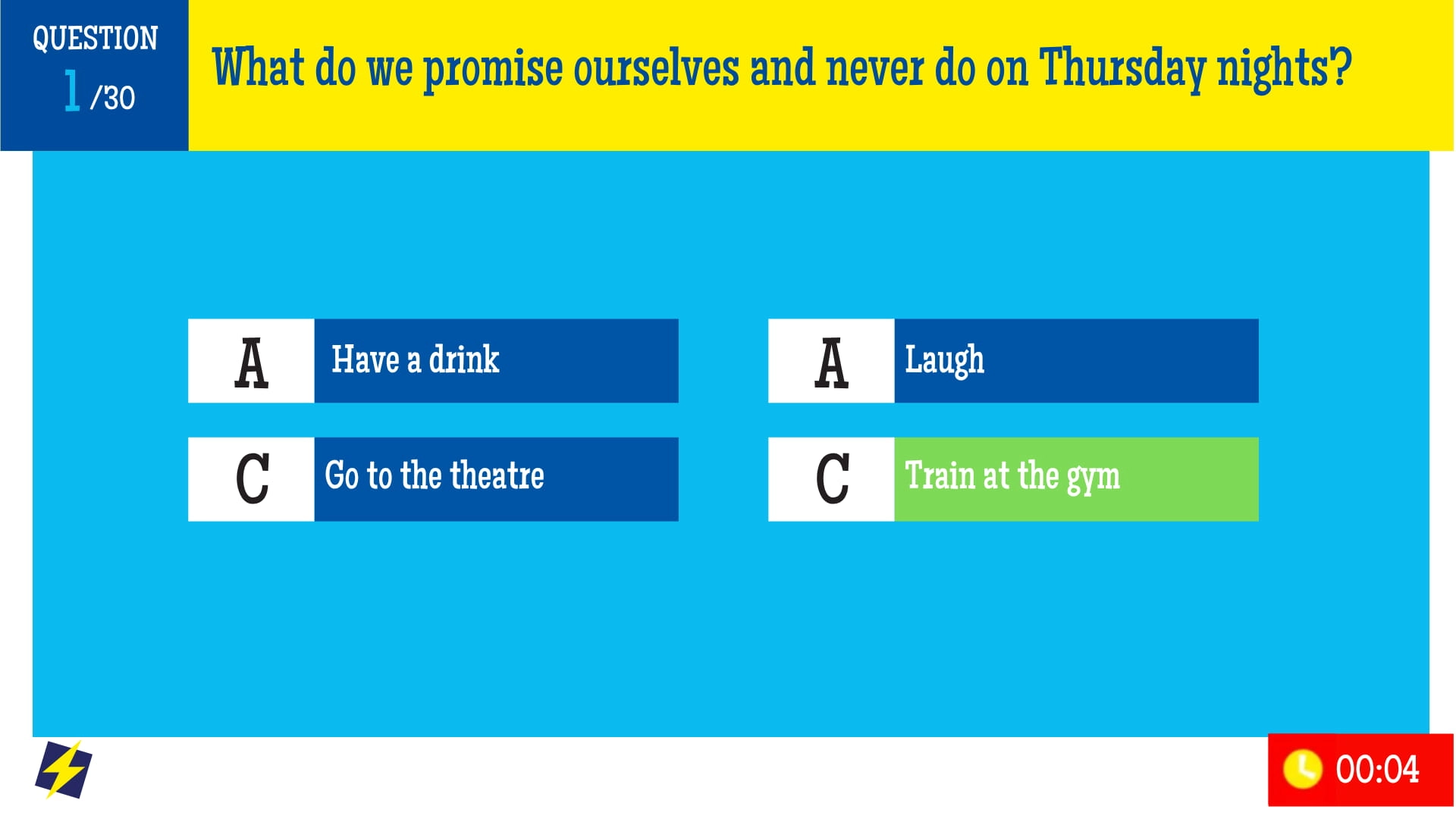 Quiz Room is an ideal team building activity to energize your team in an uninhibited professional environment, with a touch of conviviality, improvisation and completely customizable (up to the questions!).